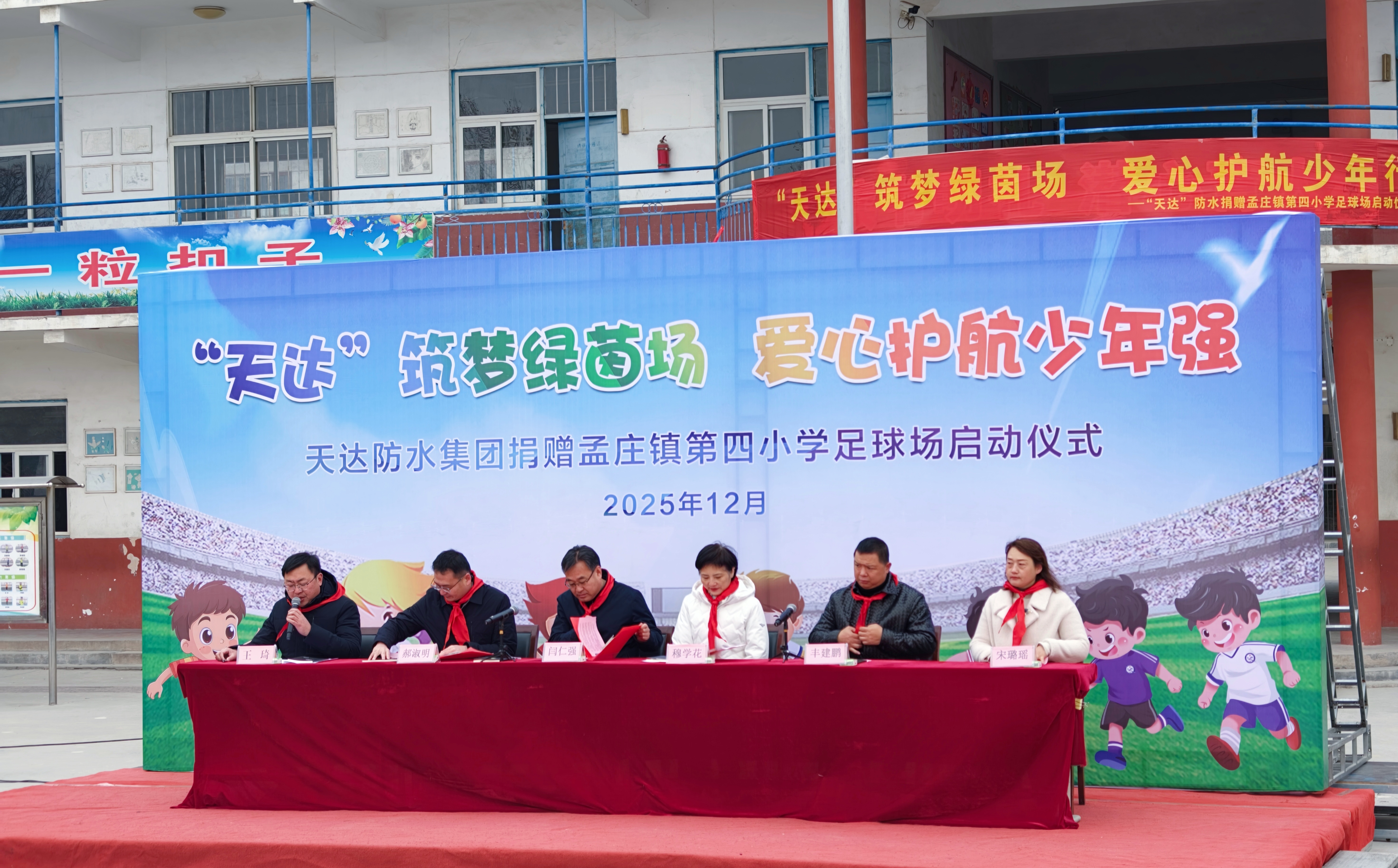 12月31日,天达防水集团向辉县孟庄镇第四小学捐赠了一座高标准足球场及20万元