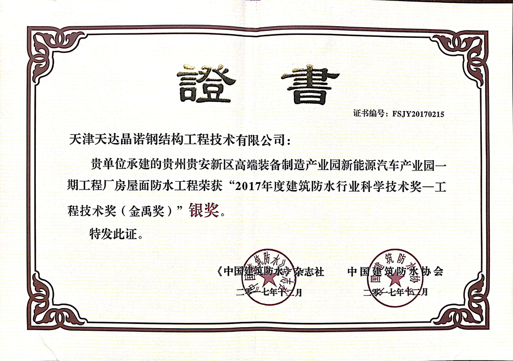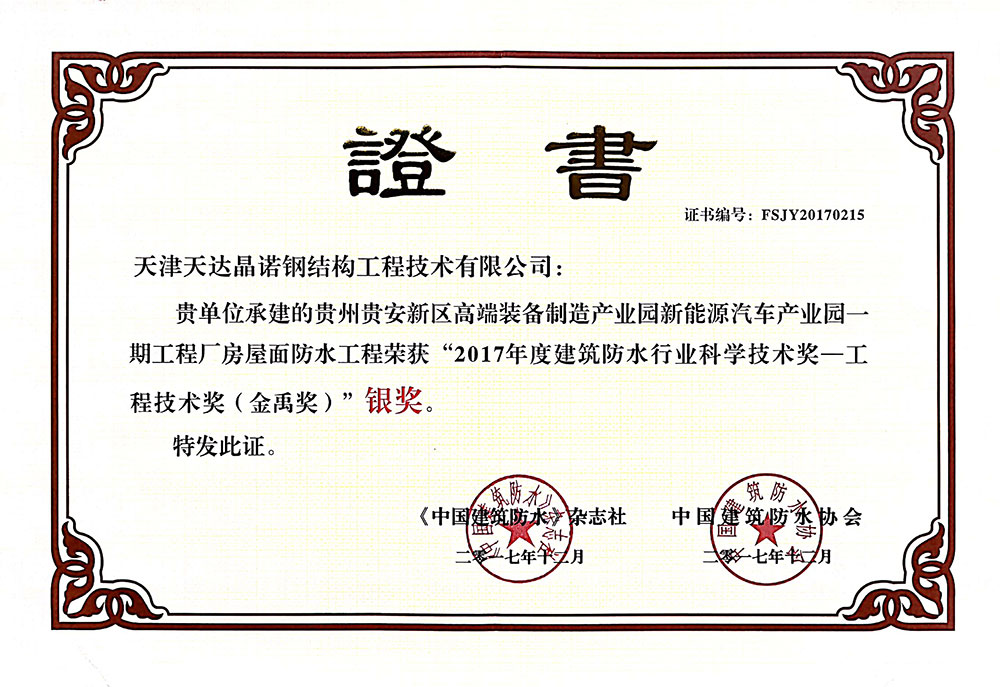 金禹奖证书